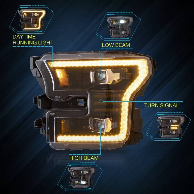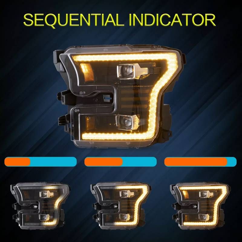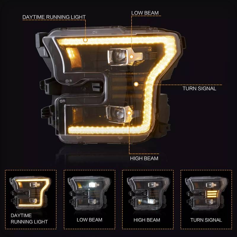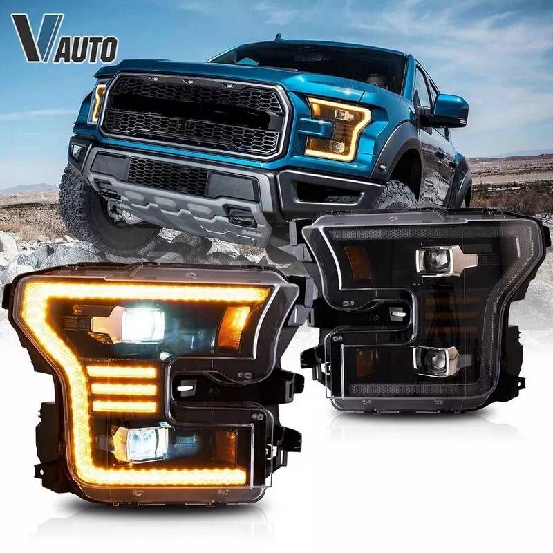 Μπροστινά Φανάρια Set Για Ford F150 MK13 14-17 DRL Dynamic Start Up Μαύρα Full Led VLand