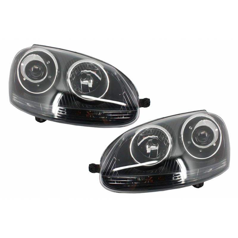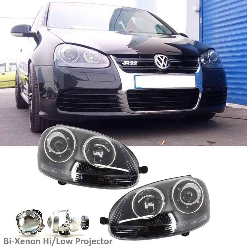 Μπροστινά Φανάρια Set Για Vw Golf V (5) 03-08 Bi-Xenon Projectors GTI / R32 Look Μαύρα H7/H7 Με Μοτέρ & E-Mark Carner
