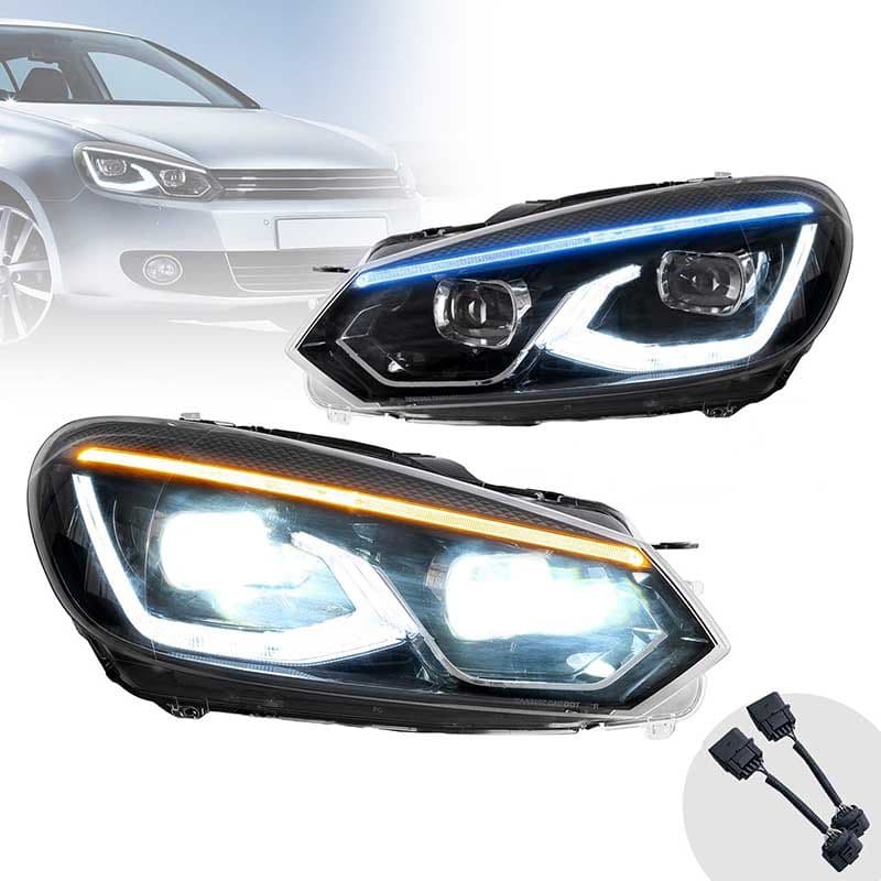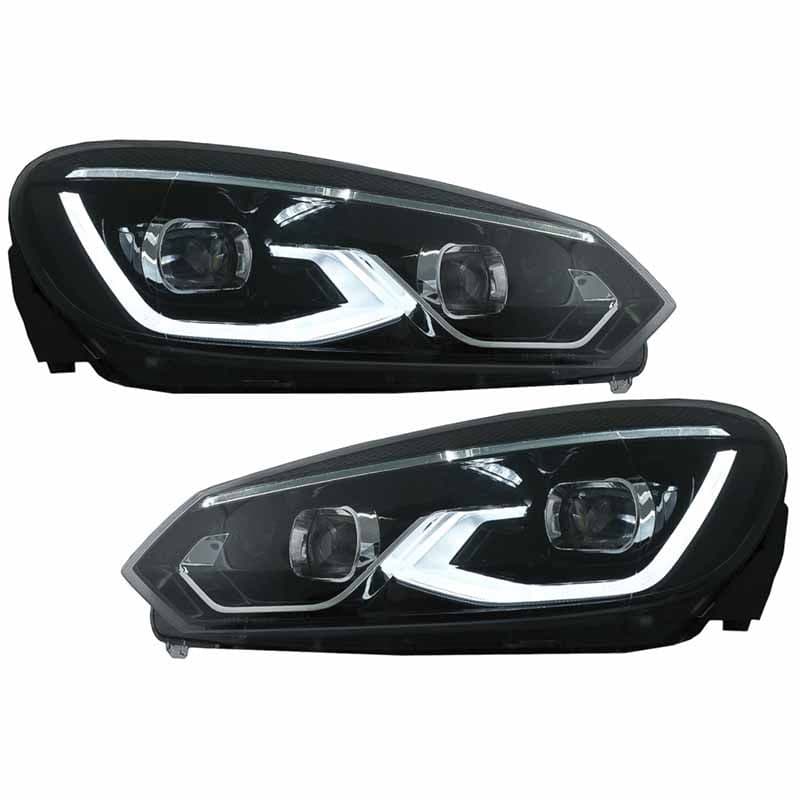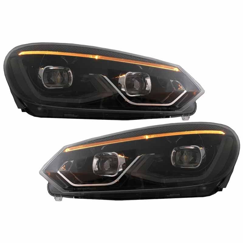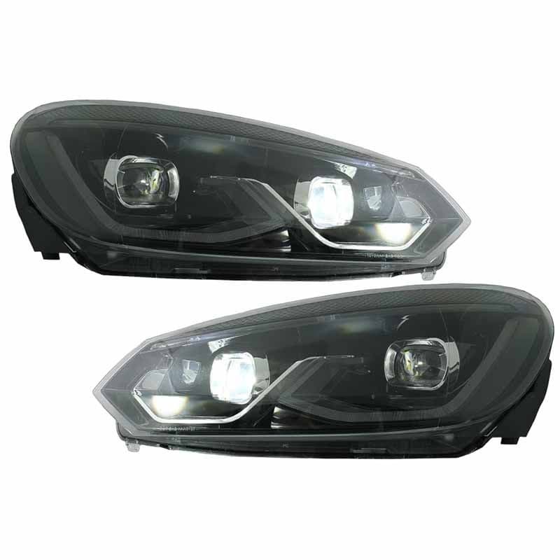 Μπροστινά Φανάρια Set Για Vw Golf VΙ (6) 08-12 Mk8 Golf Look Dynamic Start DRL & Φλας Μαύρα Full Led Με Μοτέρ VLand
