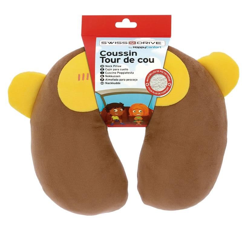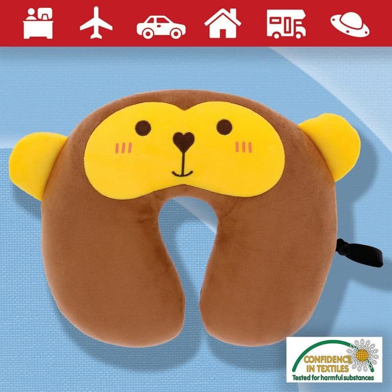 Παιδικό Μαξιλαράκι Αυχένα Ταξιδιού Happy Confort Μαϊμουδάκι 27cm x 23cm Καφέ-Κίτρινο 1 Τεμάχιο