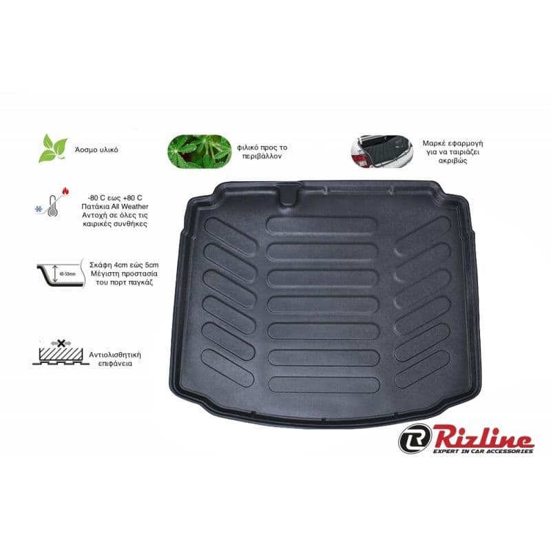 Τα υψηλής ποιότητας σκαφάκια πορτμπαγκάζ Rizline είναι κατασκευασμένα με τρόπο τέτοιο ώστε να προσαρμόζονται ακριβώς στο σχήμα του πορτ παγκάζ του αυτοκινήτου σας.Το υλικό κατασκευής τους είναι εξαιρετικά ανθεκτικό, TPE λάστιχο, υψηλής πυκνότητας. Είναι ισχυρότερο από τα αφρόδες υλικά (EVA material), υποαλλεργικό και εντελώς άοσμο που μπορεί να χρησιμοποιηθεί σε ευρύ φάσμα θερμοκρασιών από -50°C έως +80°C. Αδιάβροχα και ανθεκτικά σε λάδια και χημικά. Η κεντρική επένδυση είναι εύκολο να καθαριστεί από λάσπη, χιόνι, σκόνη, τρίχες κατοικίδιων, υγρά. Ιδανικά για επαγγελματική χρήση,εργασίες κήπου ή χρήση για την μετακίνηση του κατοικιδίου σας.Ο μοντέρνος σχεδιασμός εξασφαλίζει τη χρήση χωρίς προβλήματα.
