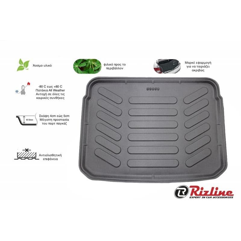 Τα υψηλής ποιότητας σκαφάκια πορτμπαγκάζ Rizline είναι κατασκευασμένα με τρόπο τέτοιο ώστε να προσαρμόζονται ακριβώς στο σχήμα του πορτ παγκάζ του αυτοκινήτου σας.Το υλικό κατασκευής τους είναι εξαιρετικά ανθεκτικό, TPE λάστιχο, υψηλής πυκνότητας. Είναι ισχυρότερο από τα αφρόδες υλικά (EVA material), υποαλλεργικό και εντελώς άοσμο που μπορεί να χρησιμοποιηθεί σε ευρύ φάσμα θερμοκρασιών από -30°C έως +45°C. Αδιάβροχα και ανθεκτικά σε λάδια και χημικά. Η κεντρική επένδυση είναι εύκολο να καθαριστεί από λάσπη, χιόνι, σκόνη, τρίχες κατοικίδιων, υγρά. Ιδανικά για επαγγελματική χρήση,εργασίες κήπου ή χρήση για την μετακίνηση του κατοικιδίου σας.Ο μοντέρνος σχεδιασμός εξασφαλίζει τη χρήση χωρίς προβλήματα.