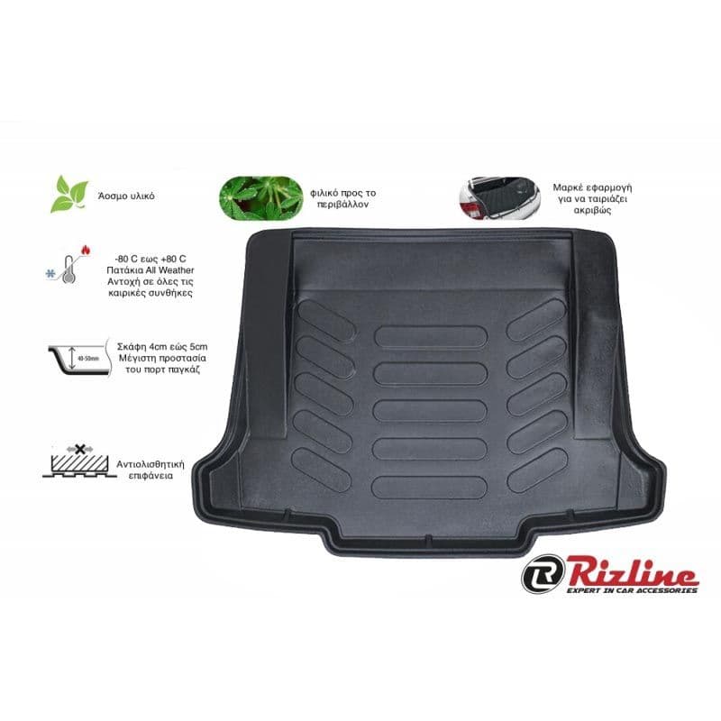 Τα υψηλής ποιότητας σκαφάκια πορτμπαγκάζ Rizline είναι κατασκευασμένα με τρόπο τέτοιο ώστε να προσαρμόζονται ακριβώς στο σχήμα του πορτ παγκάζ του αυτοκινήτου σας.Το υλικό κατασκευής τους είναι εξαιρετικά ανθεκτικό, TPE λάστιχο, υψηλής πυκνότητας. Είναι ισχυρότερο από τα αφρόδες υλικά (EVA material), υποαλλεργικό και εντελώς άοσμο που μπορεί να χρησιμοποιηθεί σε ευρύ φάσμα θερμοκρασιών από -50°C έως +80°C. Αδιάβροχα και ανθεκτικά σε λάδια και χημικά. Η κεντρική επένδυση είναι εύκολο να καθαριστεί από λάσπη, χιόνι, σκόνη, τρίχες κατοικίδιων, υγρά. Ιδανικά για επαγγελματική χρήση,εργασίες κήπου ή χρήση για την μετακίνηση του κατοικιδίου σας.Ο μοντέρνος σχεδιασμός εξασφαλίζει τη χρήση χωρίς προβλήματα.