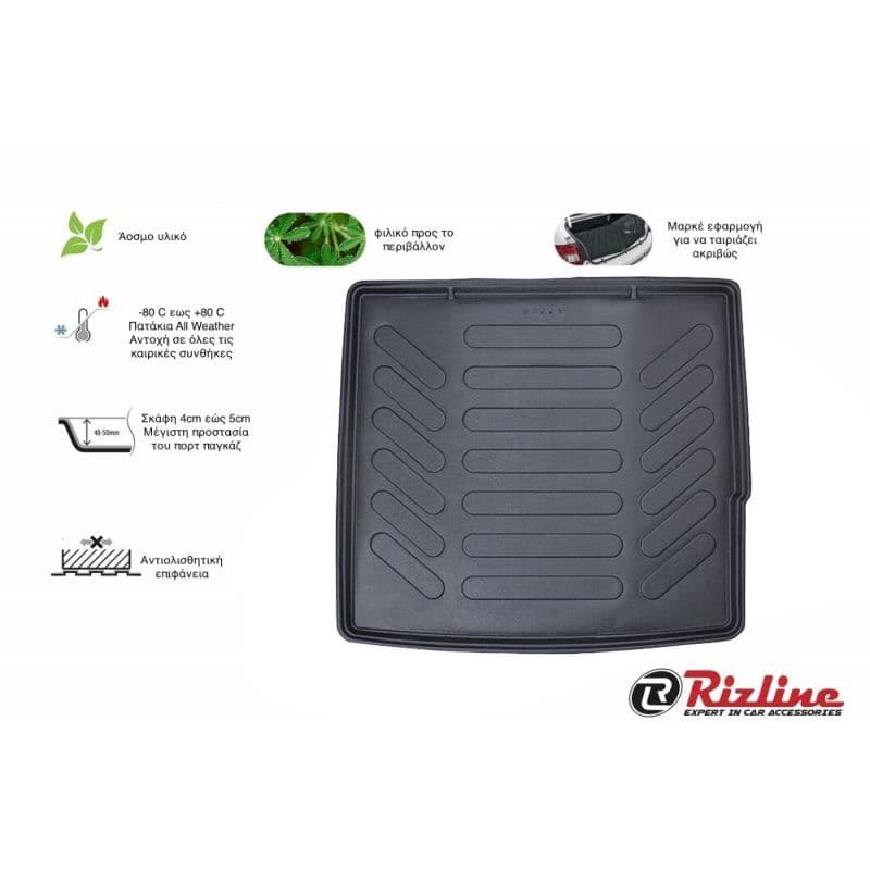 Τα υψηλής ποιότητας σκαφάκια πορτμπαγκάζ Rizline είναι κατασκευασμένα με τρόπο τέτοιο ώστε να προσαρμόζονται ακριβώς στο σχήμα του πορτ παγκάζ του αυτοκινήτου σας.Το υλικό κατασκευής τους είναι εξαιρετικά ανθεκτικό, TPE λάστιχο, υψηλής πυκνότητας. Είναι ισχυρότερο από τα αφρόδες υλικά (EVA material), υποαλλεργικό και εντελώς άοσμο που μπορεί να χρησιμοποιηθεί σε ευρύ φάσμα θερμοκρασιών από -50°C έως +80°C. Αδιάβροχα και ανθεκτικά σε λάδια και χημικά. Η κεντρική επένδυση είναι εύκολο να καθαριστεί από λάσπη, χιόνι, σκόνη, τρίχες κατοικίδιων, υγρά. Ιδανικά για επαγγελματική χρήση,εργασίες κήπου ή χρήση για την μετακίνηση του κατοικιδίου σας.Ο μοντέρνος σχεδιασμός εξασφαλίζει τη χρήση χωρίς προβλήματα.