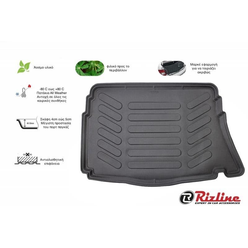 Τα υψηλής ποιότητας σκαφάκια πορτμπαγκάζ Rizline είναι κατασκευασμένα με τρόπο τέτοιο ώστε να προσαρμόζονται ακριβώς στο σχήμα του πορτ παγκάζ του αυτοκινήτου σας.Το υλικό κατασκευής τους είναι εξαιρετικά ανθεκτικό, TPE λάστιχο, υψηλής πυκνότητας. Είναι ισχυρότερο από τα αφρόδες υλικά (EVA material), υποαλλεργικό και εντελώς άοσμο που μπορεί να χρησιμοποιηθεί σε ευρύ φάσμα θερμοκρασιών από -50°C έως +80°C. Αδιάβροχα και ανθεκτικά σε λάδια και χημικά. Η κεντρική επένδυση είναι εύκολο να καθαριστεί από λάσπη, χιόνι, σκόνη, τρίχες κατοικίδιων, υγρά. Ιδανικά για επαγγελματική χρήση,εργασίες κήπου ή χρήση για την μετακίνηση του κατοικιδίου σας.Ο μοντέρνος σχεδιασμός εξασφαλίζει τη χρήση χωρίς προβλήματα.
