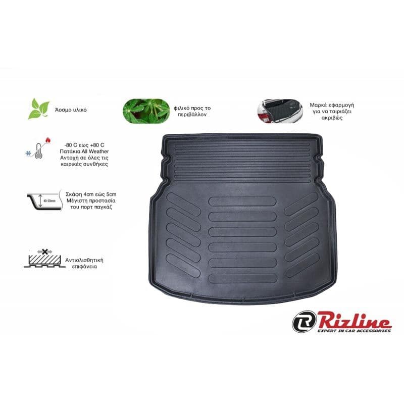 Τα υψηλής ποιότητας σκαφάκια πορτμπαγκάζ Rizline είναι κατασκευασμένα με τρόπο τέτοιο ώστε να προσαρμόζονται ακριβώς στο σχήμα του πορτ παγκάζ του αυτοκινήτου σας.Το υλικό κατασκευής τους είναι εξαιρετικά ανθεκτικό, TPE λάστιχο, υψηλής πυκνότητας. Είναι ισχυρότερο από τα αφρόδες υλικά (EVA material), υποαλλεργικό και εντελώς άοσμο που μπορεί να χρησιμοποιηθεί σε ευρύ φάσμα θερμοκρασιών από -50°C έως +80°C. Αδιάβροχα και ανθεκτικά σε λάδια και χημικά. Η κεντρική επένδυση είναι εύκολο να καθαριστεί από λάσπη, χιόνι, σκόνη, τρίχες κατοικίδιων, υγρά. Ιδανικά για επαγγελματική χρήση,εργασίες κήπου ή χρήση για την μετακίνηση του κατοικιδίου σας.Ο μοντέρνος σχεδιασμός εξασφαλίζει τη χρήση χωρίς προβλήματα.