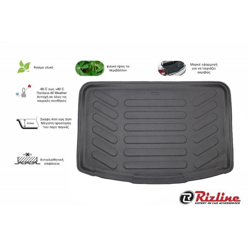 Τα υψηλής ποιότητας σκαφάκια πορτμπαγκάζ Rizline είναι κατασκευασμένα με τρόπο τέτοιο ώστε να προσαρμόζονται ακριβώς στο σχήμα του πορτ παγκάζ του αυτοκινήτου σας.Το υλικό κατασκευής τους είναι εξαιρετικά ανθεκτικό, TPE λάστιχο, υψηλής πυκνότητας. Είναι ισχυρότερο από τα αφρόδες υλικά (EVA material), υποαλλεργικό και εντελώς άοσμο που μπορεί να χρησιμοποιηθεί σε ευρύ φάσμα θερμοκρασιών από -50°C έως +80°C. Αδιάβροχα και ανθεκτικά σε λάδια και χημικά. Η κεντρική επένδυση είναι εύκολο να καθαριστεί από λάσπη, χιόνι, σκόνη, τρίχες κατοικίδιων, υγρά. Ιδανικά για επαγγελματική χρήση,εργασίες κήπου ή χρήση για την μετακίνηση του κατοικιδίου σας.Ο μοντέρνος σχεδιασμός εξασφαλίζει τη χρήση χωρίς προβλήματα.