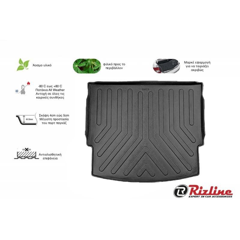 Τα υψηλής ποιότητας σκαφάκια πορτμπαγκάζ Rizline είναι κατασκευασμένα με τρόπο τέτοιο ώστε να προσαρμόζονται ακριβώς στο σχήμα του πορτ παγκάζ του αυτοκινήτου σας.Το υλικό κατασκευής τους είναι εξαιρετικά ανθεκτικό, TPE λάστιχο, υψηλής πυκνότητας. Είναι ισχυρότερο από τα αφρόδες υλικά (EVA material), υποαλλεργικό και εντελώς άοσμο που μπορεί να χρησιμοποιηθεί σε ευρύ φάσμα θερμοκρασιών από -50°C έως +80°C. Αδιάβροχα και ανθεκτικά σε λάδια και χημικά. Η κεντρική επένδυση είναι εύκολο να καθαριστεί από λάσπη, χιόνι, σκόνη, τρίχες κατοικίδιων, υγρά. Ιδανικά για επαγγελματική χρήση,εργασίες κήπου ή χρήση για την μετακίνηση του κατοικιδίου σας.Ο μοντέρνος σχεδιασμός εξασφαλίζει τη χρήση χωρίς προβλήματα.