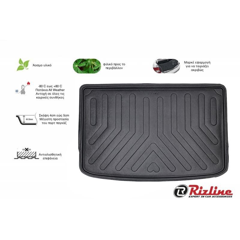 Τα υψηλής ποιότητας σκαφάκια πορτμπαγκάζ Rizline είναι κατασκευασμένα με τρόπο τέτοιο ώστε να προσαρμόζονται ακριβώς στο σχήμα του πορτ παγκάζ του αυτοκινήτου σας.Το υλικό κατασκευής τους είναι εξαιρετικά ανθεκτικό, TPE λάστιχο, υψηλής πυκνότητας. Είναι ισχυρότερο από τα αφρόδες υλικά (EVA material), υποαλλεργικό και εντελώς άοσμο που μπορεί να χρησιμοποιηθεί σε ευρύ φάσμα θερμοκρασιών από -50°C έως +80°C. Αδιάβροχα και ανθεκτικά σε λάδια και χημικά. Η κεντρική επένδυση είναι εύκολο να καθαριστεί από λάσπη, χιόνι, σκόνη, τρίχες κατοικίδιων, υγρά. Ιδανικά για επαγγελματική χρήση,εργασίες κήπου ή χρήση για την μετακίνηση του κατοικιδίου σας.Ο μοντέρνος σχεδιασμός εξασφαλίζει τη χρήση χωρίς προβλήματα.
