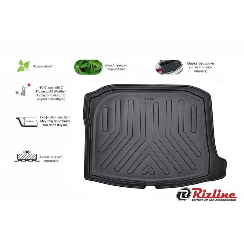 Τα υψηλής ποιότητας σκαφάκια πορτμπαγκάζ Rizline είναι κατασκευασμένα με τρόπο τέτοιο ώστε να προσαρμόζονται ακριβώς στο σχήμα του πορτ παγκάζ του αυτοκινήτου σας.Το υλικό κατασκευής τους είναι εξαιρετικά ανθεκτικό, TPE λάστιχο, υψηλής πυκνότητας. Είναι ισχυρότερο από τα αφρόδες υλικά (EVA material), υποαλλεργικό και εντελώς άοσμο που μπορεί να χρησιμοποιηθεί σε ευρύ φάσμα θερμοκρασιών από -50°C έως +80°C. Αδιάβροχα και ανθεκτικά σε λάδια και χημικά. Η κεντρική επένδυση είναι εύκολο να καθαριστεί από λάσπη, χιόνι, σκόνη, τρίχες κατοικίδιων, υγρά. Ιδανικά για επαγγελματική χρήση,εργασίες κήπου ή χρήση για την μετακίνηση του κατοικιδίου σας.Ο μοντέρνος σχεδιασμός εξασφαλίζει τη χρήση χωρίς προβλήματα.