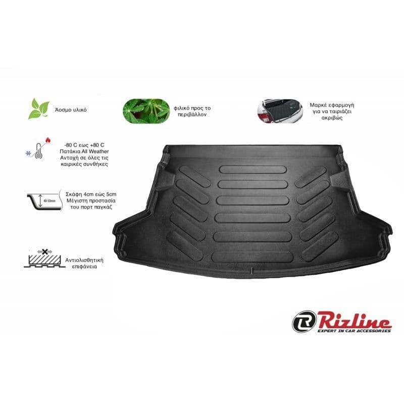 Τα υψηλής ποιότητας σκαφάκια πορτμπαγκάζ Rizline είναι κατασκευασμένα με τρόπο τέτοιο ώστε να προσαρμόζονται ακριβώς στο σχήμα του πορτ παγκάζ του αυτοκινήτου σας.Το υλικό κατασκευής τους είναι εξαιρετικά ανθεκτικό, TPE λάστιχο, υψηλής πυκνότητας. Είναι ισχυρότερο από τα αφρόδες υλικά (EVA material), υποαλλεργικό και εντελώς άοσμο που μπορεί να χρησιμοποιηθεί σε ευρύ φάσμα θερμοκρασιών από -50°C έως +80°C. Αδιάβροχα και ανθεκτικά σε λάδια και χημικά. Η κεντρική επένδυση είναι εύκολο να καθαριστεί από λάσπη, χιόνι, σκόνη, τρίχες κατοικίδιων, υγρά. Ιδανικά για επαγγελματική χρήση,εργασίες κήπου ή χρήση για την μετακίνηση του κατοικιδίου σας.Ο μοντέρνος σχεδιασμός εξασφαλίζει τη χρήση χωρίς προβλήματα.