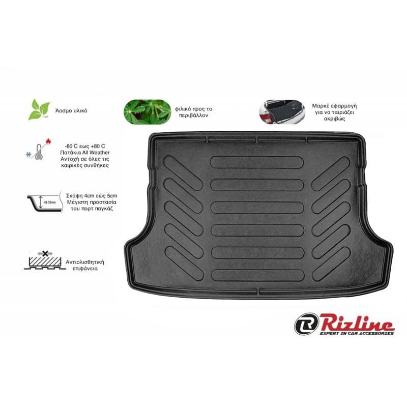 Τα υψηλής ποιότητας σκαφάκια πορτμπαγκάζ Rizline είναι κατασκευασμένα με τρόπο τέτοιο ώστε να προσαρμόζονται ακριβώς στο σχήμα του πορτ παγκάζ του αυτοκινήτου σας.Το υλικό κατασκευής τους είναι εξαιρετικά ανθεκτικό, TPE λάστιχο, υψηλής πυκνότητας. Είναι ισχυρότερο από τα αφρόδες υλικά (EVA material), υποαλλεργικό και εντελώς άοσμο που μπορεί να χρησιμοποιηθεί σε ευρύ φάσμα θερμοκρασιών από -50°C έως +80°C. Αδιάβροχα και ανθεκτικά σε λάδια και χημικά. Η κεντρική επένδυση είναι εύκολο να καθαριστεί από λάσπη, χιόνι, σκόνη, τρίχες κατοικίδιων, υγρά. Ιδανικά για επαγγελματική χρήση,εργασίες κήπου ή χρήση για την μετακίνηση του κατοικιδίου σας.Ο μοντέρνος σχεδιασμός εξασφαλίζει τη χρήση χωρίς προβλήματα.