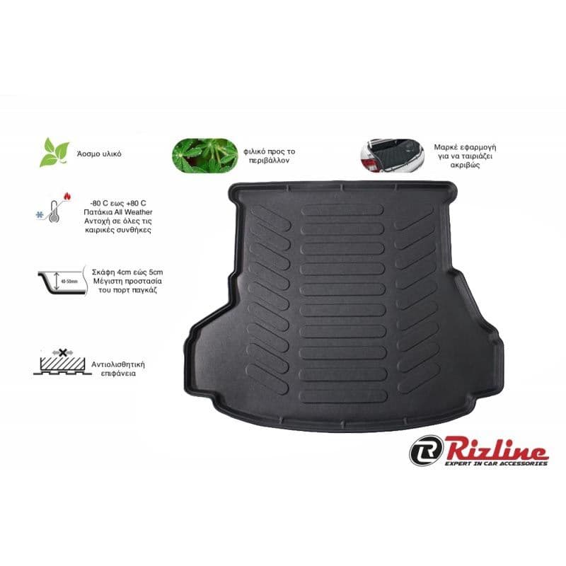 Τα υψηλής ποιότητας σκαφάκια πορτμπαγκάζ Rizline είναι κατασκευασμένα με τρόπο τέτοιο ώστε να προσαρμόζονται ακριβώς στο σχήμα του πορτ παγκάζ του αυτοκινήτου σας.Το υλικό κατασκευής τους είναι εξαιρετικά ανθεκτικό, TPE λάστιχο, υψηλής πυκνότητας. Είναι ισχυρότερο από τα αφρόδες υλικά (EVA material), υποαλλεργικό και εντελώς άοσμο που μπορεί να χρησιμοποιηθεί σε ευρύ φάσμα θερμοκρασιών από -50°C έως +80°C. Αδιάβροχα και ανθεκτικά σε λάδια και χημικά. Η κεντρική επένδυση είναι εύκολο να καθαριστεί από λάσπη, χιόνι, σκόνη, τρίχες κατοικίδιων, υγρά. Ιδανικά για επαγγελματική χρήση,εργασίες κήπου ή χρήση για την μετακίνηση του κατοικιδίου σας.Ο μοντέρνος σχεδιασμός εξασφαλίζει τη χρήση χωρίς προβλήματα.