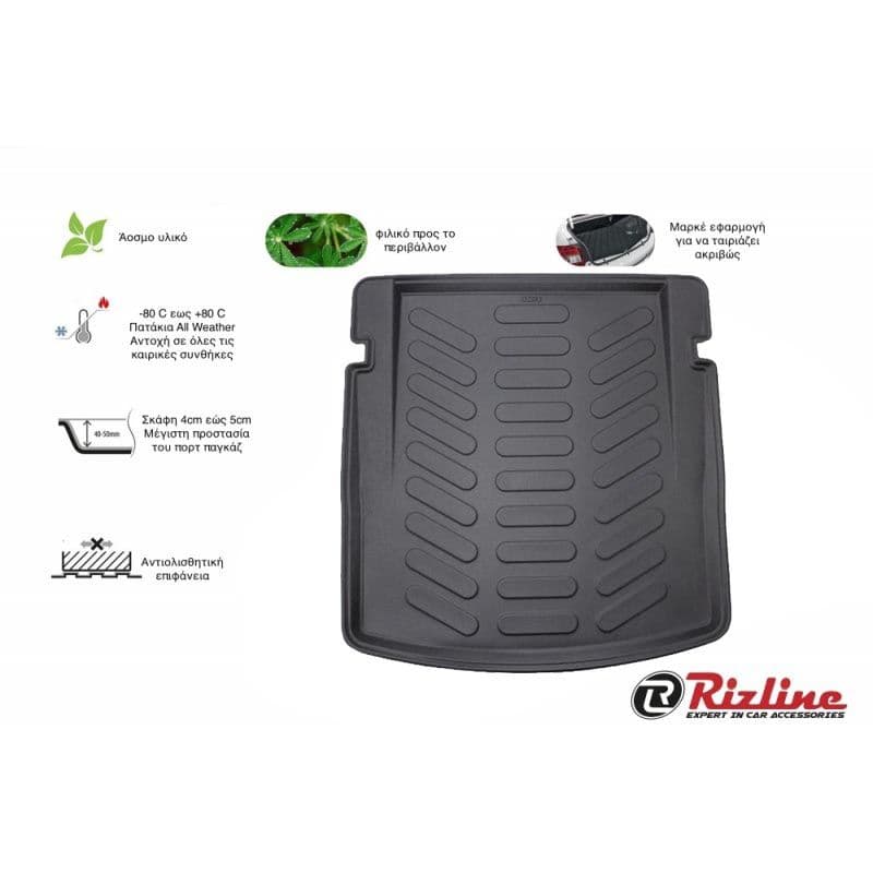Τα υψηλής ποιότητας σκαφάκια πορτμπαγκάζ Rizline είναι κατασκευασμένα με τρόπο τέτοιο ώστε να προσαρμόζονται ακριβώς στο σχήμα του πορτ παγκάζ του αυτοκινήτου σας.Το υλικό κατασκευής τους είναι εξαιρετικά ανθεκτικό, TPE λάστιχο, υψηλής πυκνότητας. Είναι ισχυρότερο από τα αφρόδες υλικά (EVA material), υποαλλεργικό και εντελώς άοσμο που μπορεί να χρησιμοποιηθεί σε ευρύ φάσμα θερμοκρασιών από -50°C έως +80°C. Αδιάβροχα και ανθεκτικά σε λάδια και χημικά. Η κεντρική επένδυση είναι εύκολο να καθαριστεί από λάσπη, χιόνι, σκόνη, τρίχες κατοικίδιων, υγρά. Ιδανικά για επαγγελματική χρήση,εργασίες κήπου ή χρήση για την μετακίνηση του κατοικιδίου σας.Ο μοντέρνος σχεδιασμός εξασφαλίζει τη χρήση χωρίς προβλήματα.