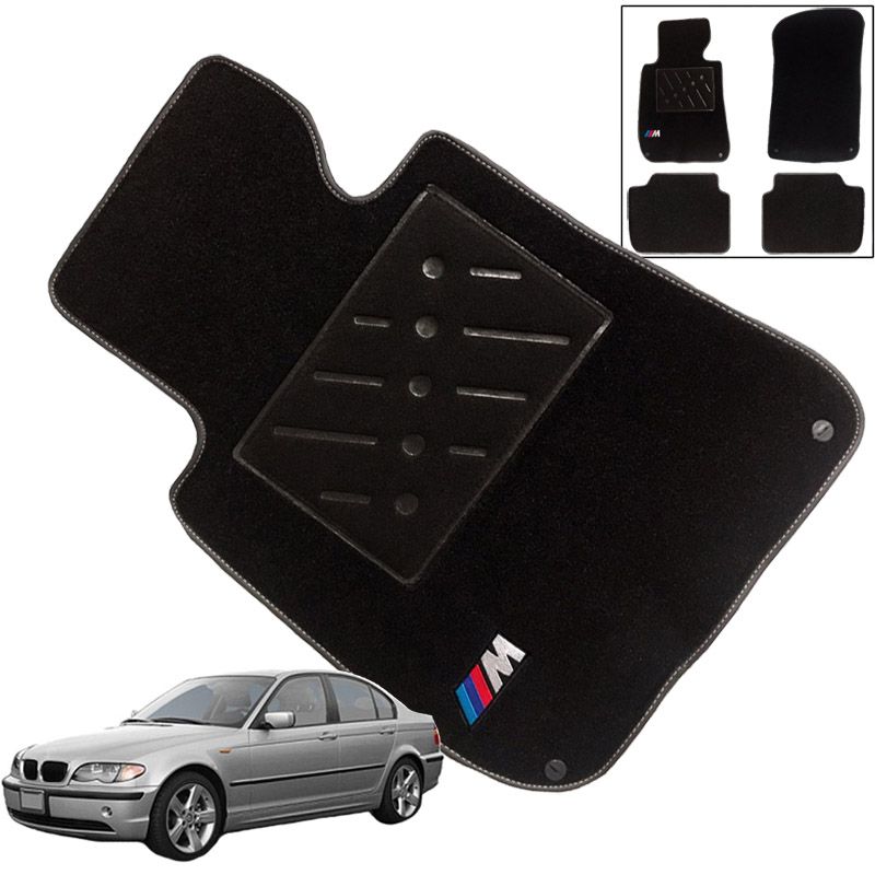 Πατάκια Αυτοκινήτου Μοκέτα Για Bmw 3 E46 98-05 Με Μονό Κέντημα Μ Black 4 Τεμάχια