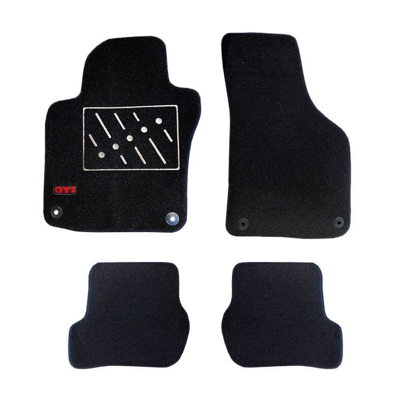 Πατάκια Αυτοκινήτου Μοκέτα Για Vw Golf 5 & 6 Με Μονό Κέντημα Gti Μαύρη Με Μαύρο Ρέλι 4 Τεμάχια