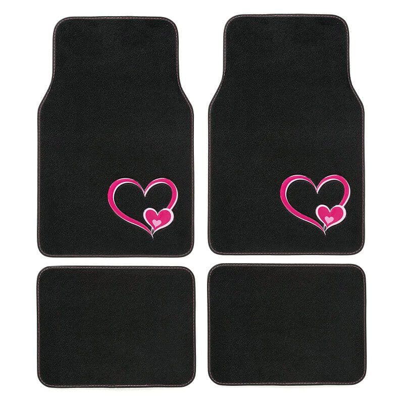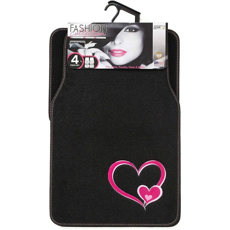 Πατάκια Αυτοκινήτου Universal Μοκέτα "Girly Fashion Collection" Car+ Μαύρες Με Ροζ Καρδιές 4 Pieces