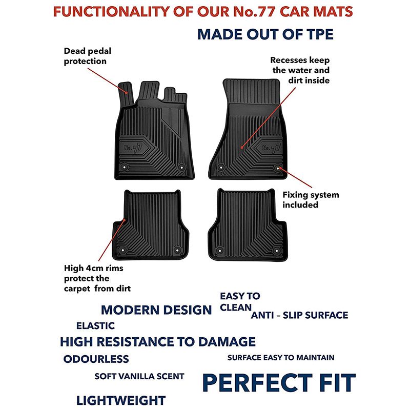 Πατάκια Σκαφάκια Series #77 Από Λάστιχο TPE Για VW Golf 7 VII/T-Roc 18+/Leon 5F 12-19 Frogum 4 Τεμάχια Μαύρα