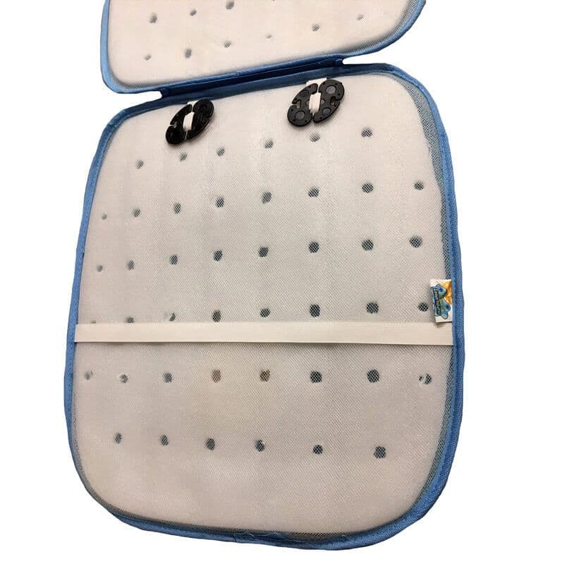 - Επίσης διαθέτει επένδυση για το προσκέφαλό το οποίο πιάνει περιμετρικά από το προσκέφαλο του αυτοκινήτου με ένα κλιπ.
