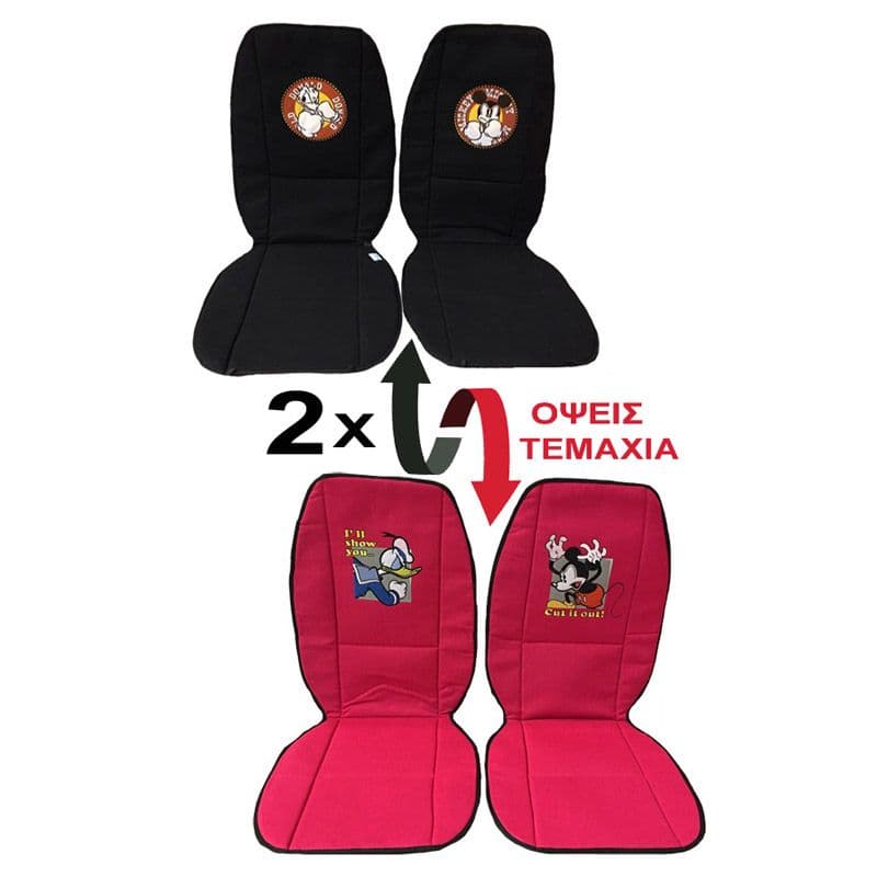 Πλατοκαθίσματα Double Face Καραβόπανο Disney Mickey Mouse / Donald Duck Κόκκινο / Μαύρο 2 Τεμάχια