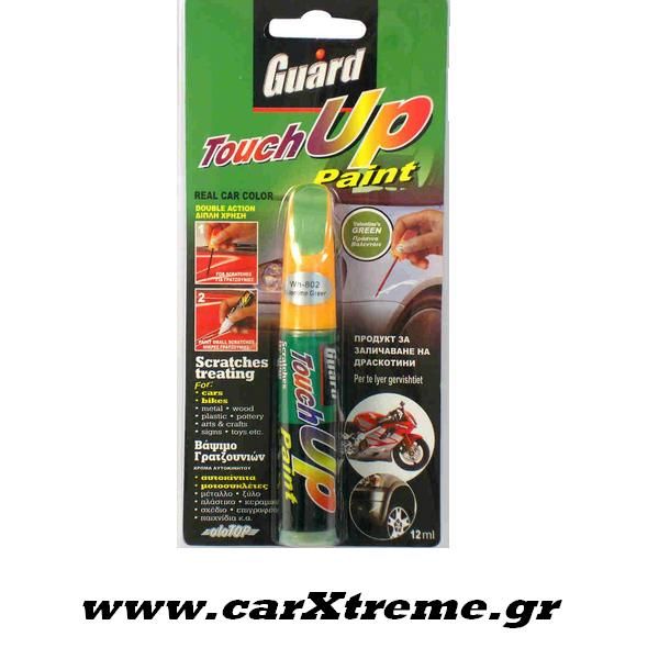 Πράσσινο βαλεντάιν χρώμα σε στικ από την νέα σειρά Touch up της Guard, πολύ καλής ποιότητος, με διπλή χρήση είτε μολυβιού, είτε πινελάκι.
