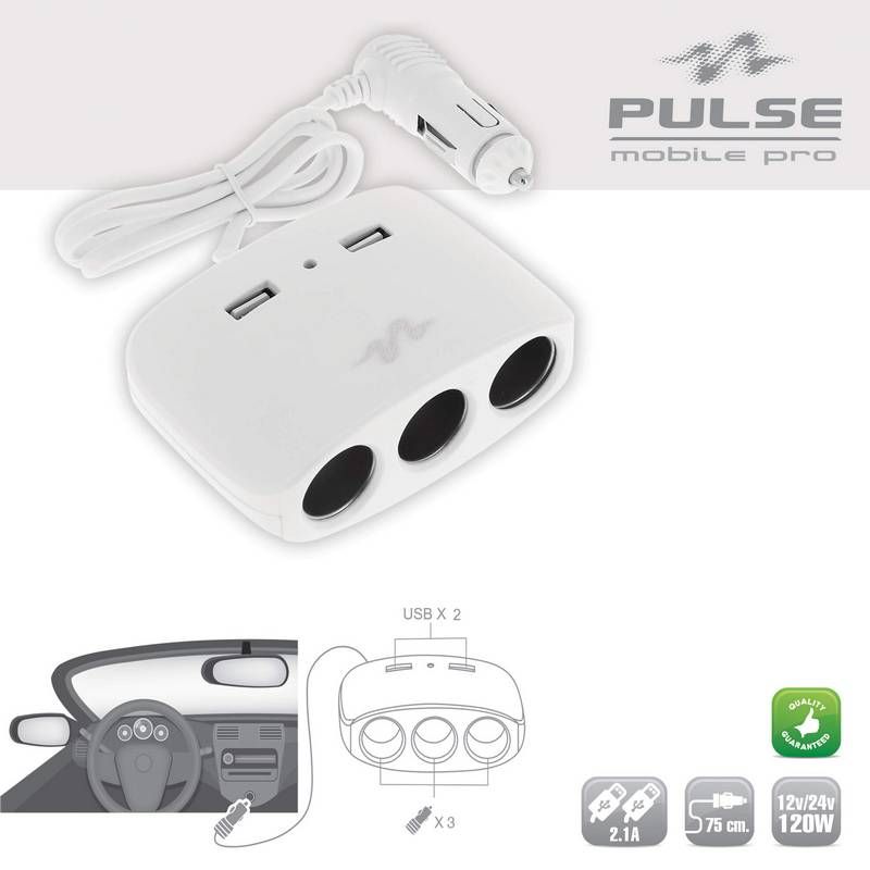 Προέκταση Αναπτήρα Τριπλή Με Δύο Usb Άσπρο Pulse Mobile MLS511W