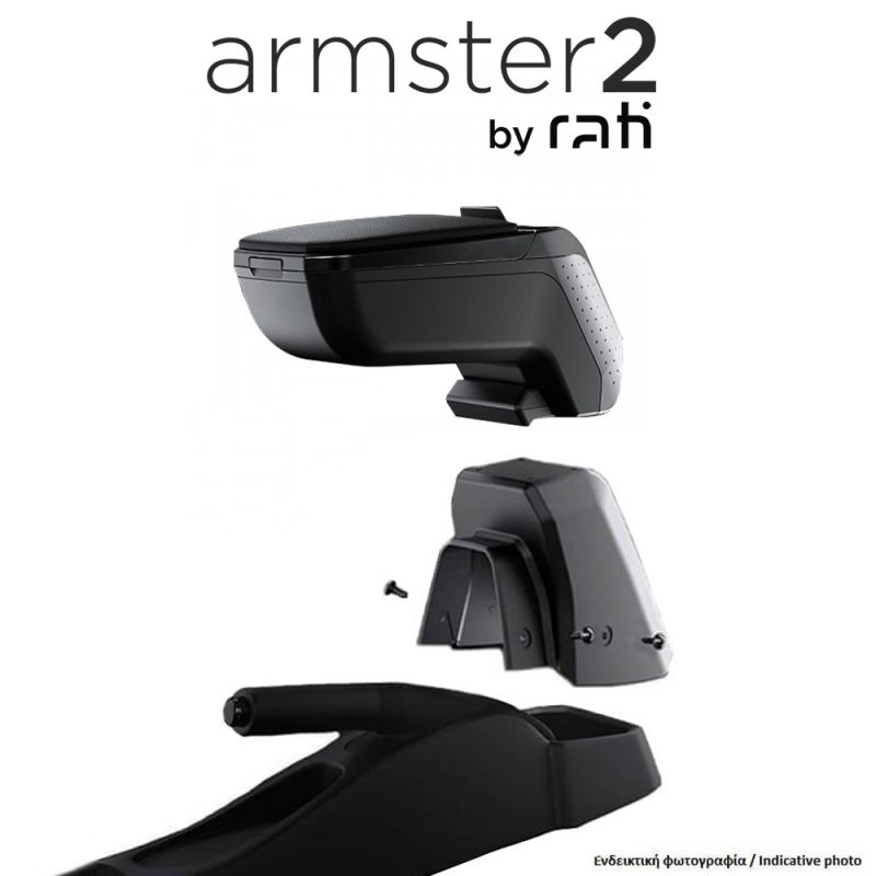 Πλήρες, ολοκληρωμένο σετ με κονσόλα χειροφρένου (τεμπέλη) αυτοκινήτου της σειράς ARMSTER 2 μαζί με την ειδική βάση τοποθέτησης (μαρκέ αντάπτορας) από την εταιρία RATI, ουγγρικής προέλευσης. Ιδανικό αξεσουάρ αυτοκινήτου για να στηρίζετε και να ξεκουράζετε τα άκρα σας κατά την οδήγηση, κατάλληλο και για χρήση ως πρόσθετος αποθηκευτικός χώρος με άμεση πρόσβαση σε μικροπράγματα και προσωπικά αντικείμενα, χρήματα, κινητό τηλέφωνο, κλειδιά, κτλ.