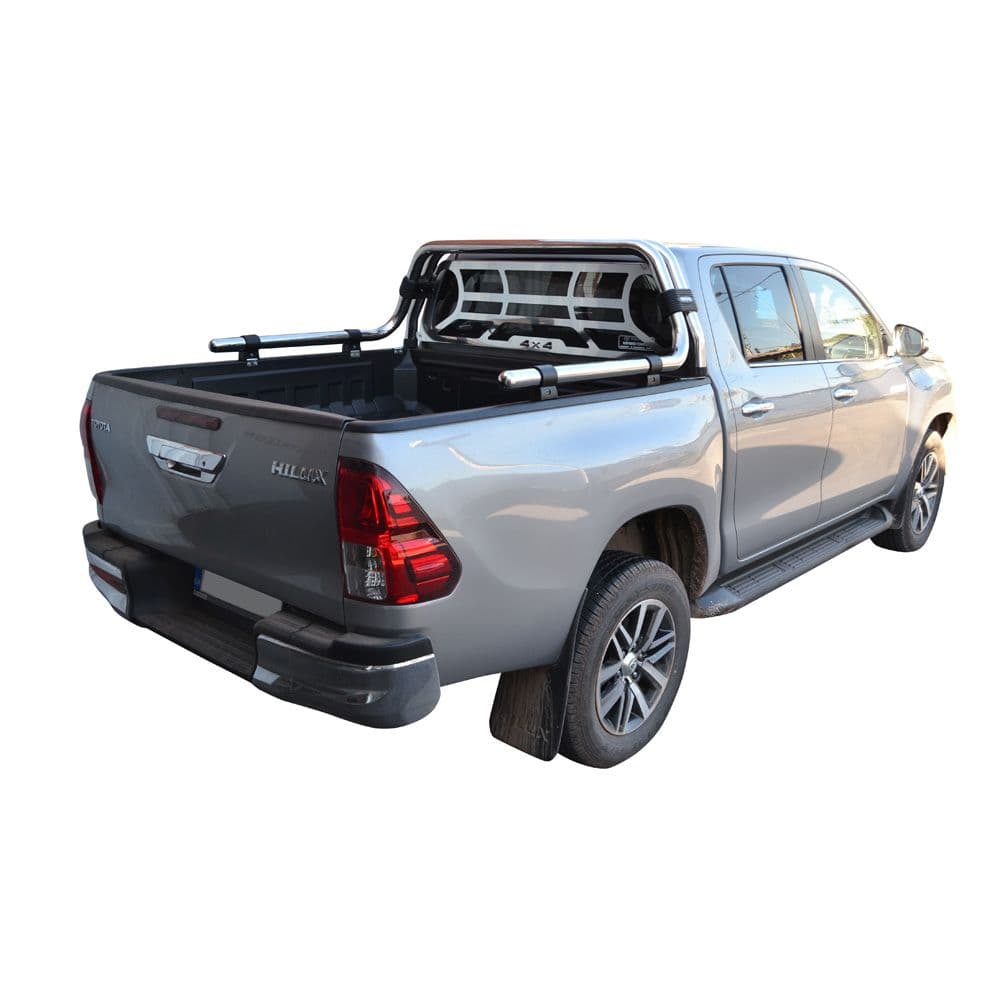 ROLL-BAR μονοκόμματο, διπλό, με κουπαστή έως πίσω & επίπεδη ανοξείδωτη προστατευτική αψίδα τζαμιού εισαγωγής τύπου αράχνης