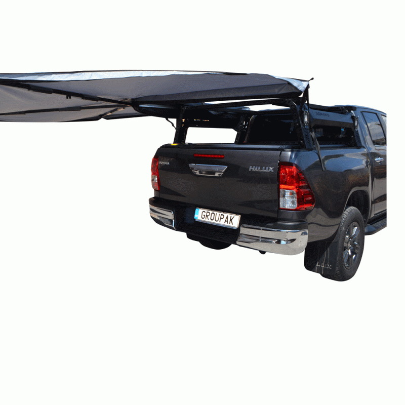 Το 4x4 Pick-Up MultiCamping® από την Groupak θα γίνει αναπόσπαστο κομμάτι της καθημερινότητάς σας, καθώς μπορεί να καλύψει κάθε ανάγκη σας και να δώσει λύσεις σε ένα τεράστιο εύρος δραστηριοτήτων, είτε προσωπικών είτε επαγγελματικών. Camping στην ύπαιθρο και δραστηριότητες σε αυτήν, υπηρεσίες κατασκήνωσης, προσωπικές στιγμές ή ένα δείπνο στην παραλία, αποδράσεις του σαββατοκύριακου, προσωπικά χόμπι όπως κυνήγι, ψάρεμα, πεζοπορία, αναρρίχηση, ποδηλασία και μακρινά ταξίδια. Ταυτόχρονα είναι η απόλυτη λύση και για κάθε επαγγελματία πχ αγρότη/πολιτικό μηχανικό/αρχιτέκτονα/γεωπόνο/οινοπαραγωγό/αρχαιολόγο/τεχνικές εταιρίες/εταιρείες διοργάνωσης εκδηλώσεων κλπ κατά τη διάρκεια των εξωτερικών εργασιών τους ή ακόμα και στα διαλείμματά τους. Είναι ο σύμμαχός σας στις καθημερινές σας δραστηριότητες, τις προσωπικές σας στιγμές, τις μικρές ή μεγάλες αποδράσεις σας και τις περιπέτειές σας στη φύση, και βέβαια και στα μικρά διαλείμματα/ανάσες που μπορεί να χρειαστείτε κατά διάρκεια της ημέρας. Roll-Bar σκηνής και πολλαπλών λειτουργιών: Με τέσσερα (4) LED περιμετρικά, ώστε να είναι χρήσιμο και λειτουργικό ακόμα και τη νύχτα. Αναλυτική περιγραφή και πληροφορίες στον παρακάτω σύνδεσμο: https://groupak.gr/product/roll-bar-skinis-kai-pollaplon-efarmogon-rb-418-tent-toyota-hilux-revo-20162021/ Πλαϊνή περιστρεφόμενη τέντα αυτοκινήτου 270 Μοίρες: Πλαϊνή περιστρεφόμενη τέντα αυτοκινήτου 270 Μοίρες | Fast Release Model | Xωρίς Πόδια. Αναλυτική περιγραφή και πληροφορίες στον παρακάτω σύνδεσμο: https://groupak.gr/product/plaini-tenta-skiasis-avtokinitou-wa03-200-fast/