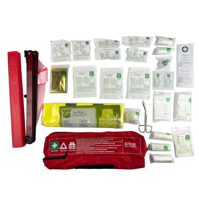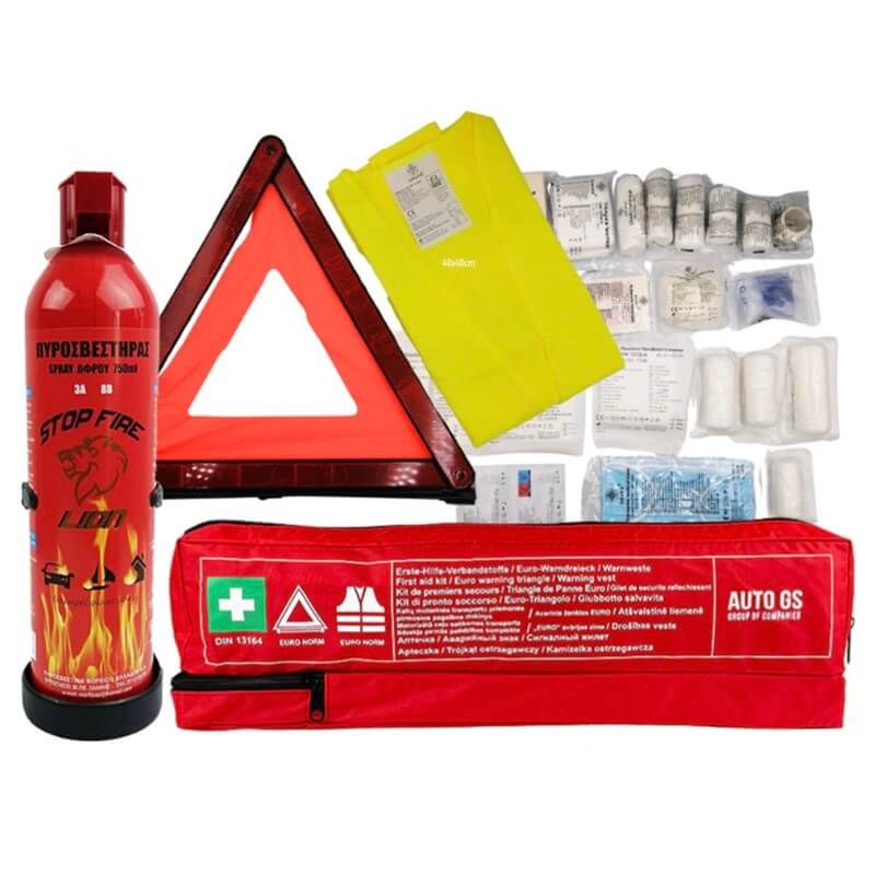 Πλήρες σετ πρώτων βοηθειών για το αυτοκίνητο σας, το οποίο περιλαμβάνει όλα τα απαραίτητα βοηθήματα σε περίπτωση ανάγκης.