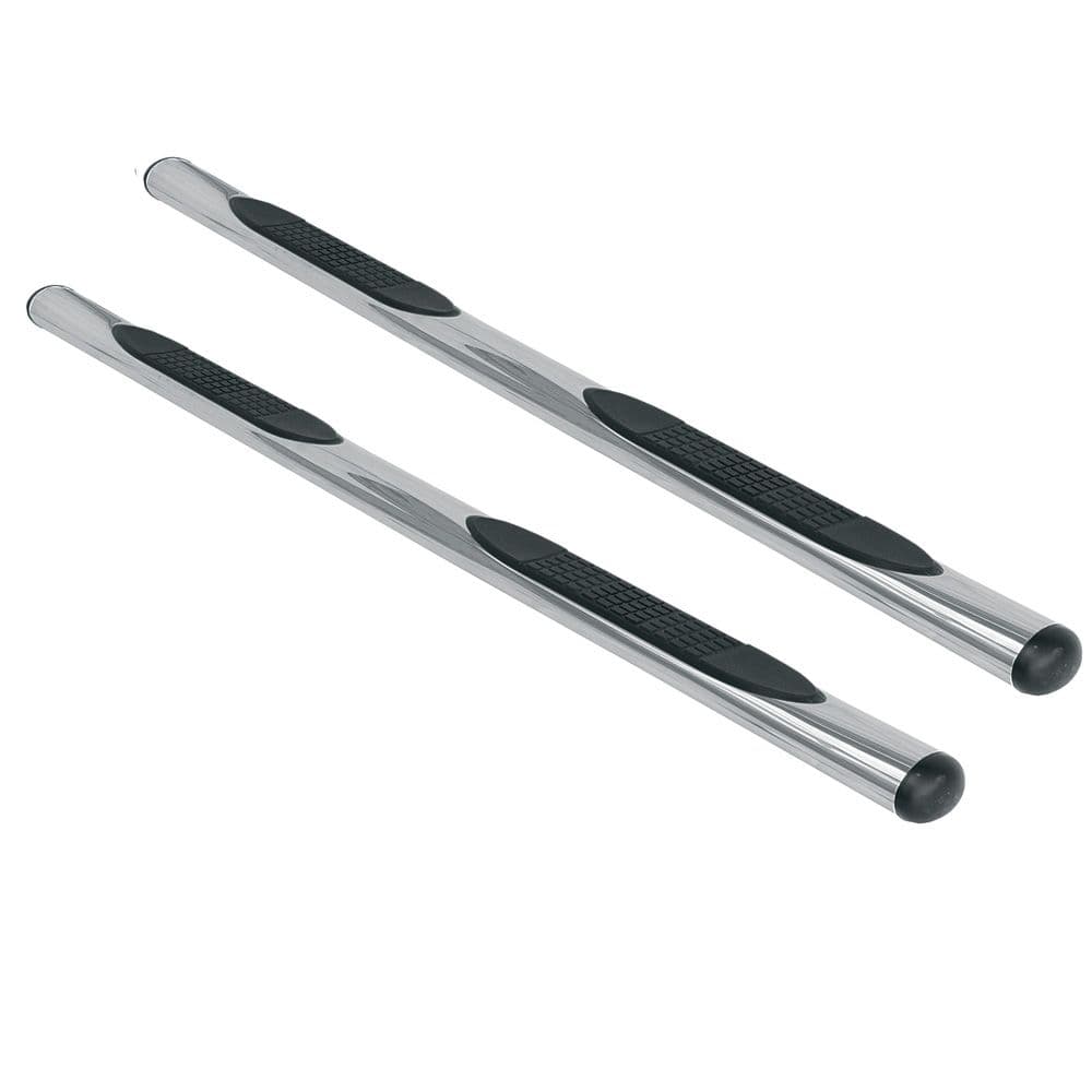 Σκαλοπάτια εργοστασιακού τύπου OVAL (πλακουτσωτά) από σωλήνα ΙΝΟΧ (4") με διπλό αντιολισθητικό πάτημα για την εύκολη πρόσβαση στην καμπίνα των επιβατών καθώς και την πλαϊνή παθητική ασφάλεια του αυτοκινήτου.