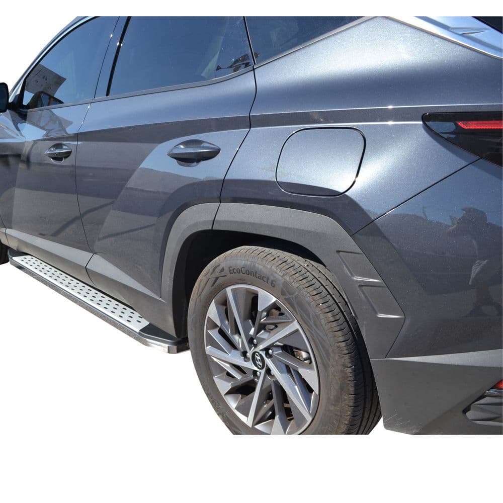 Premium Σκαλοπάτια πλατιά αλουμινίου πιτσιλωτά, βαρέως τύπου, με αντιολισθητικό πάτημα για την εύκολη πρόσβαση στην καμπίνα των επιβατών καθώς και την πλαϊνή παθητική ασφάλεια του αυτοκινήτου