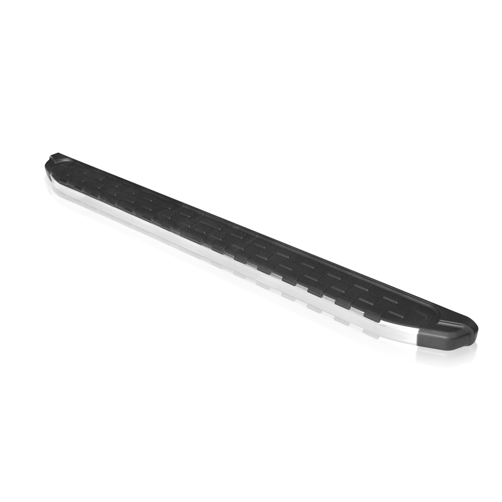 Σκαλοπάτια πλατιά αλουμινίου βαρέως τύπου σε μάτ μαύρο με ασημί λωρίδα και αντιολισθητική επιφάνεια για την εύκολη πρόσβαση στην καμπίνα των επιβατών καθώς και την πλαϊνή παθητική ασφάλεια του αυτοκινήτου