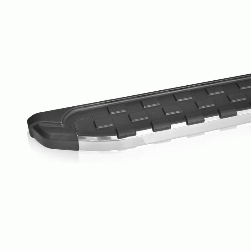 Σκαλοπάτια πλατιά αλουμινίου βαρέως τύπου σε μάτ μαύρο με ασημί λωρίδα και αντιολισθητική επιφάνεια για την εύκολη πρόσβαση στην καμπίνα των επιβατών καθώς και την πλαϊνή παθητική ασφάλεια του αυτοκινήτου