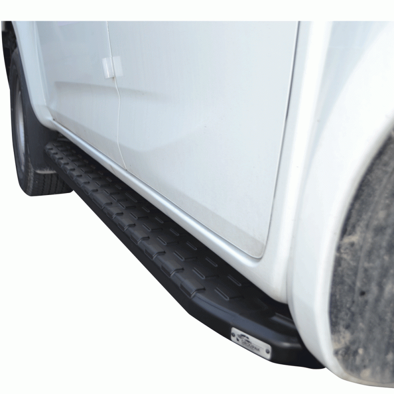 Σκαλοπάτια πλατιά αλουμινίου βαρέως τύπου σε μάτ μαύρο και αντιολισθητική επιφάνεια για την εύκολη πρόσβαση στην καμπίνα των επιβατών καθώς και την πλαϊνή παθητική ασφάλεια του αυτοκινήτου