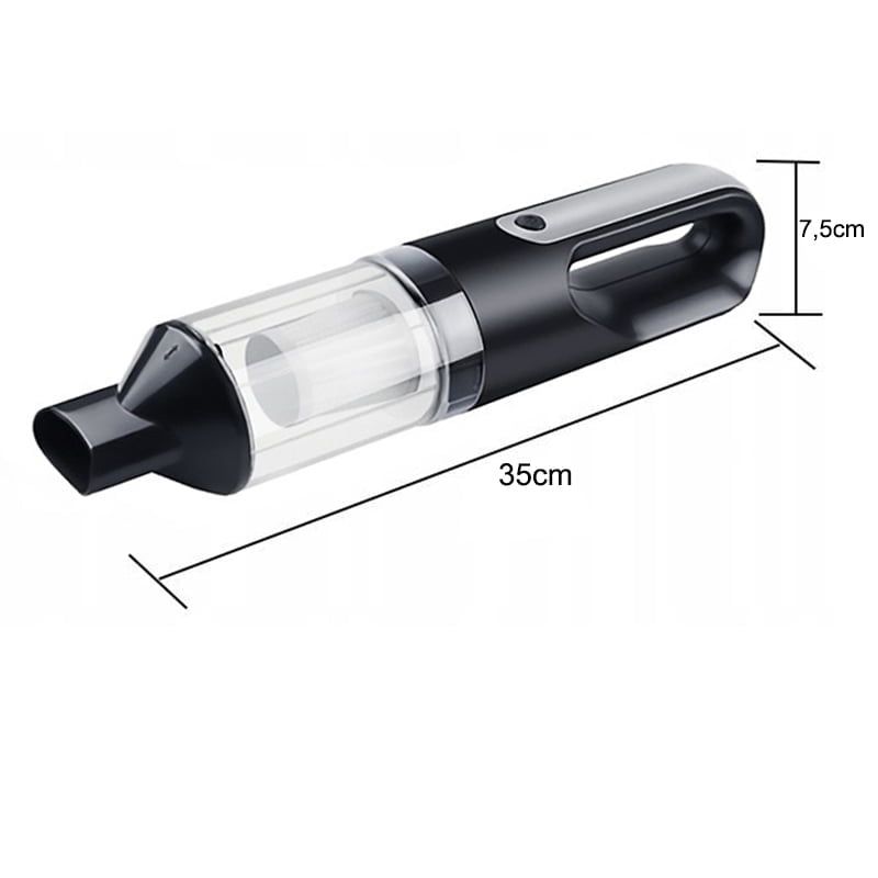 Επεκτάσιμο ακροφύσιο για καθάρισμα δυσπρόσιτων σημείων Πλαϊνός κάδος για εύκολο άδειασμα σκουπιδών Πρακτικός σχεδιασμός για εύκολη αποθήκευση Μήκος καλωδίου φόρτισης: 4m Ισχύς: 80-100W Voltage: DC 12V Vacuum power: 80-100W Suction: 4000PA Power cable length: 4M Product material: ABS plastic case + metal movement Single product size: 35x7.5x7.5cm Color:black With CE