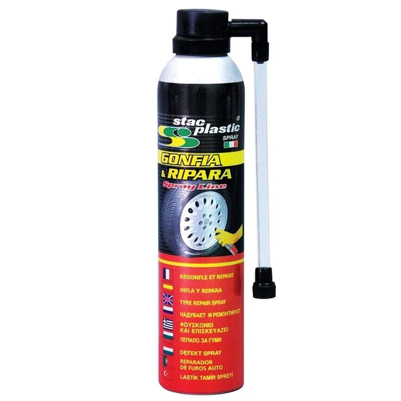 Κόλλα για ελαστικά ψεκασμού της μάρκας Stac Plastic. Η κόλλα έχει σχεδιαστεί για επισκευή έκτακτης ανάγκης και φούσκωμα ενός σκασμένου ελαστικού χωρίς την ανάγκη αποσυναρμολόγησης. Είναι κατάλληλο για κάθε τύπο ελαστικού - με ή χωρίς εσωτερικό σωλήνα. Λειτουργεί βαθιά μέσα στο λάστιχο, σχηματίζοντας μια ειδική μεμβράνη, σφραγίζοντας το, γεγονός που εξασφαλίζει αποτελεσματική επισκευή.