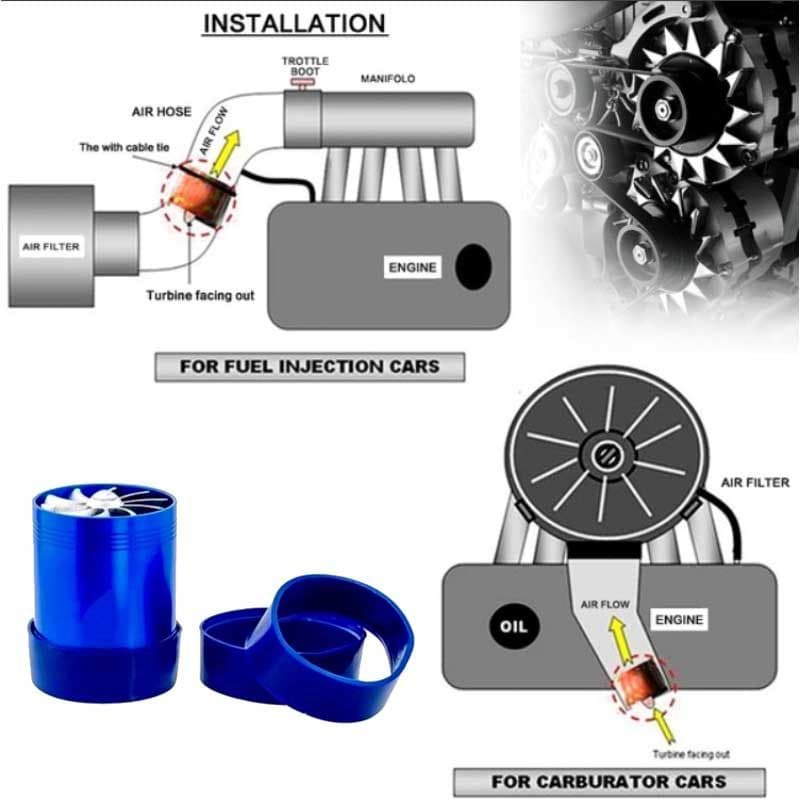 Το σούπερ σπιράλ τούρμπο της carner δημιουργεί μια ροή αέρα για να βελτιώσει την καύση του μείγματος αέρα και του καυσίμου για την αύξηση της απόδοσης του κινητήρα σας.Ταιριάζει σε όλα τα αυτοκίνητα με Φ60mm.