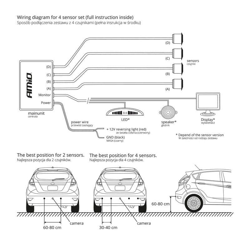 Σύστημα Παρκαρίσματος PDC Με 4 Αισθητήρες 18mm Μαύρο Χρώμα Με Οθόνη Led Amio Gold 01577