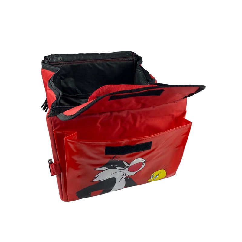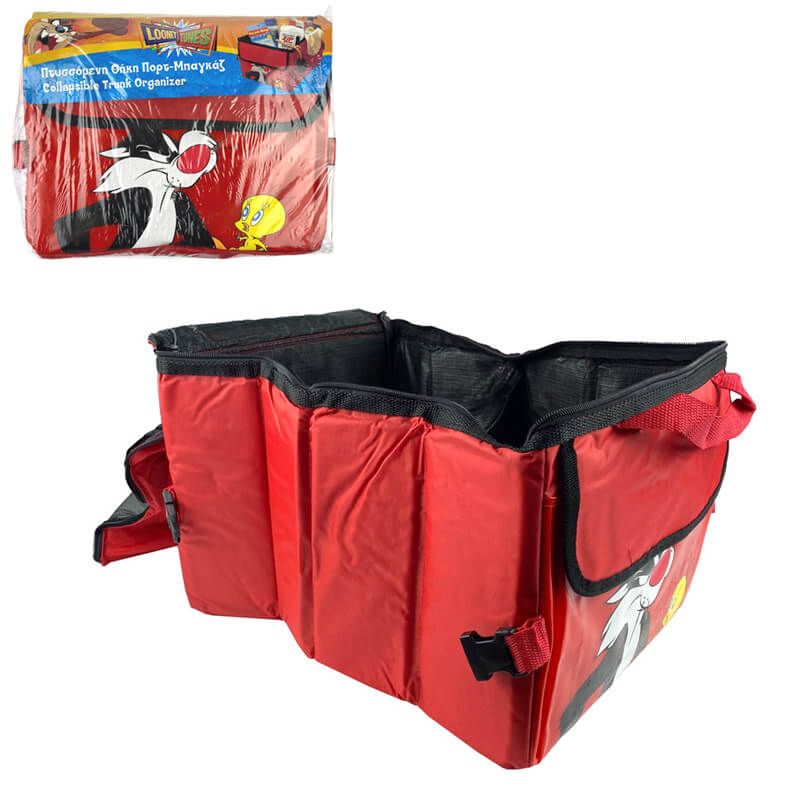 Θήκη Οργάνωσης Πορτ-Παγκάζ Αυτοκινήτου Πτυσσόμενη Με Φερμουάρ Και Τσέπες Looney Tunes Sylvester & Tweety 30x39x24cm Κόκκινη