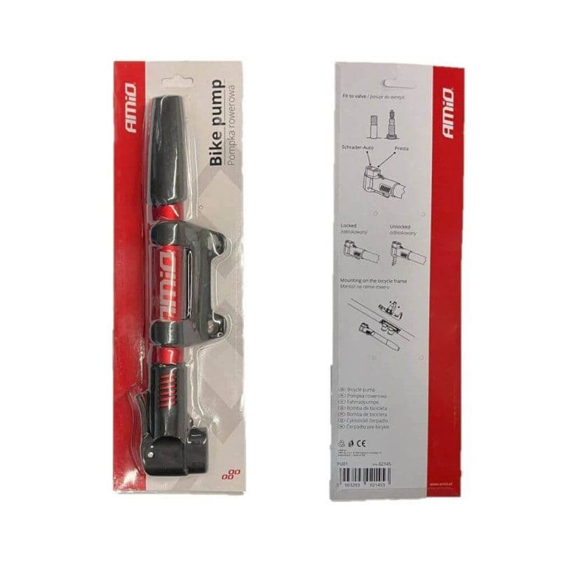 Τρόμπα Αέρος Χειρός Ποδηλάτου Και Αυτοκινήτου Αλουμινίου Amio Κόκκινη 28cm 02145