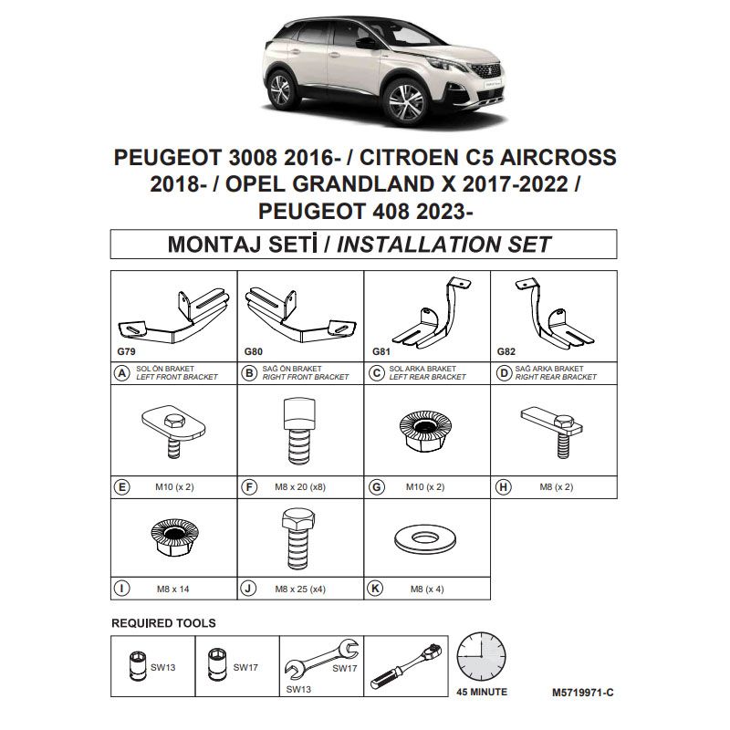 Βάσεις Πλαινών Σκαλοπατιών (Dma) Για Opel Grandland 2022-2024 Suv I / Peugeot 3008 2016-2023 Suv P84